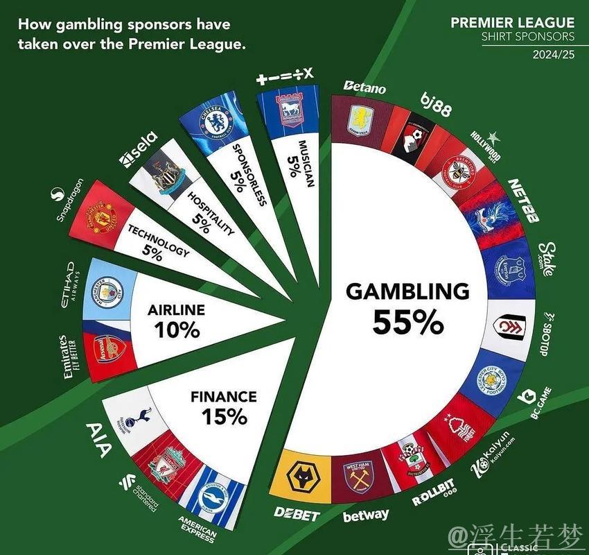 英超联赛正站在一场商业版图重塑的风口。随着英国政府推进更严格的博彩监管政策,计划在未来数年内全面叫停博彩企业出现在顶级赛事球衣胸前广告位置,至少有11家英超俱乐部被直接卷入这场“赞助风暴”,他们原本稳